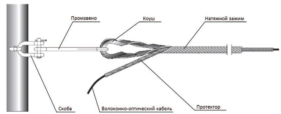 Комплект состоит из натяжного зажима и протектора. Как показано на рисунке, помимо самих натяжных зажимов, в набор также входят коуш (заказывается отдельно).
