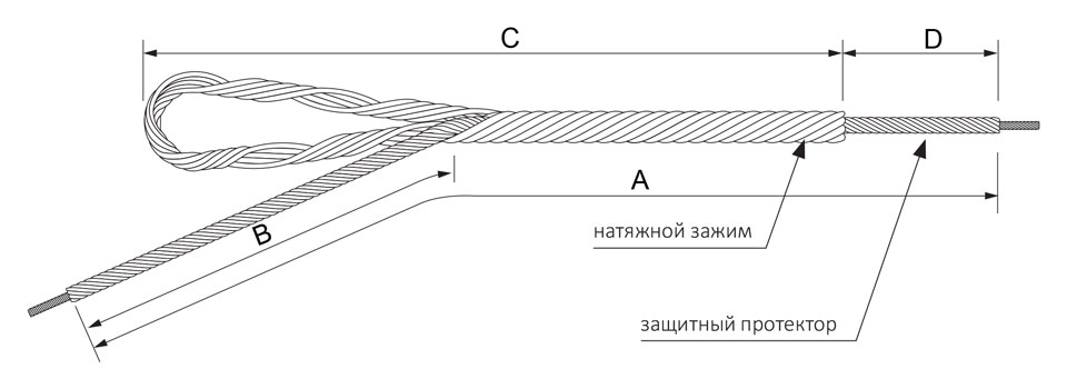Комплект натяжного зажим для волоконно-оптических кабелей состоит из натяжного спирального зажима и защитного протектора.